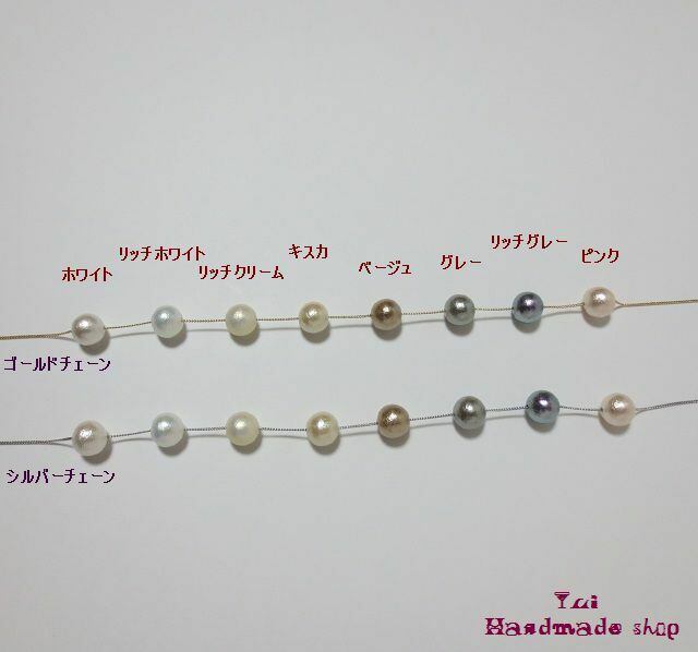チェーン長さ・コットンパールの色とサイズは変更可能です